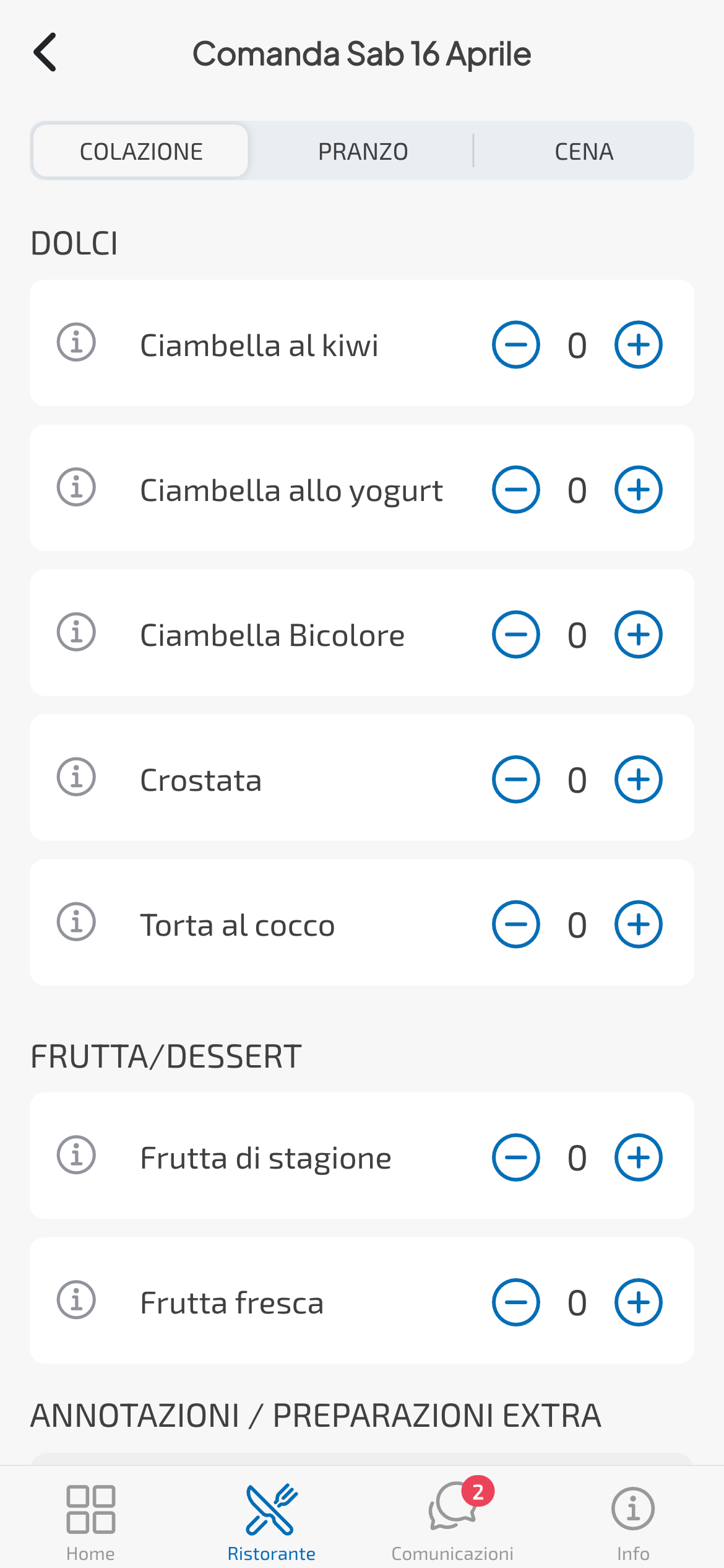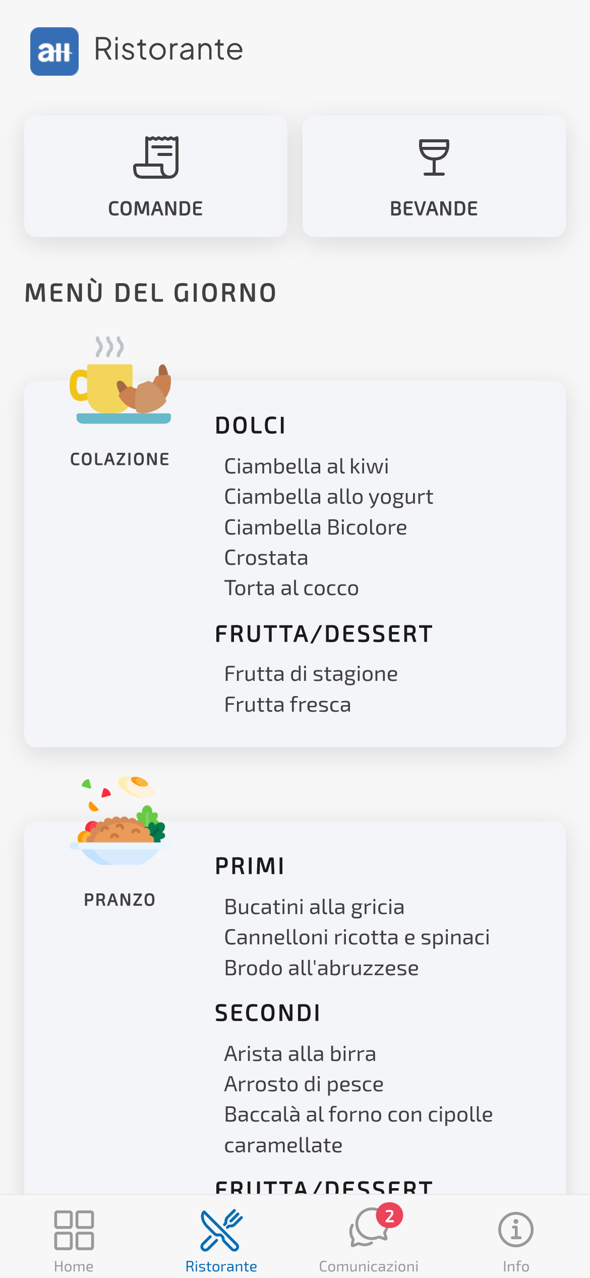 Invia notifiche push all'ospite per una comunicazione o semplicemente per ricordagli di prenotare il menù del giorno dopo.